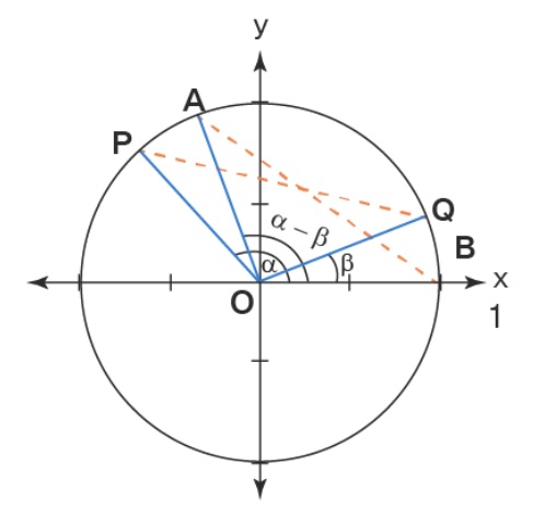 Remember that point \(P\) has coordinates \((\cos\alpha, \sin\alpha)\) and point \(Q\) has coordinates \((\cos\beta, \sin\beta)\text{.}\)